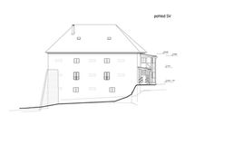 Tvrz je, jedním slovem, velká. Tedy jistě z pohledu toho, na co jsme v dnešní době standardně zvyklí. Jen patro zrekonstruované pro bydlení má více jak 110 m2, což je téměř dvojnásobek, za roky zažitých, panelákových 3+1. Pohledem od příjezdu Vám stavba bude připadat v celku subtilně, ale tím se nenechte zmást. Tvrz je zapuštěná do svahu, a tak Vám její sklepy, suterén a první podlaží bude na první pohled utajeno. Teprve pohled ze zahrady odhalí její skutečnou velikost a celistvou hmotu.